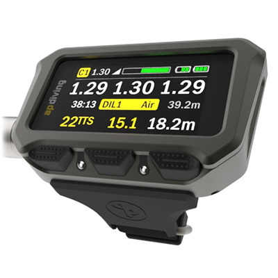 Das 2020VISION Farbdisplay ist als werksseitig installiertes Upgrade für bestehende Kunden und als Standardausrüstung aller neuen AP Rebreather vorgesehen.