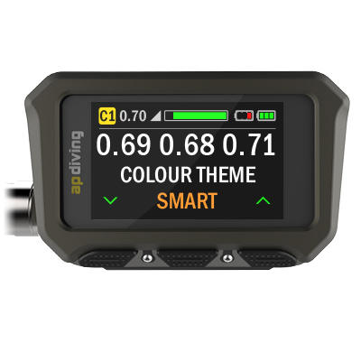 Vom Taucher auswählbar je nach individuellen Vorlieben: enthält Standardeinstellung 'Smart' (wie in allen Screens oben abgebildet), 'Farbenblind', 'Tagesleuchtfarben' oder 'Mono Weiß'. Sie können sich auch alternativ Ihr eigenes personalisiertes Farbschema zusammenstellen.