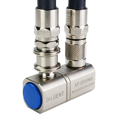 Die Dual Diluent Inflator mit GC3R (Flowstop) Absperrventil kombiniert die Vorteile des Dual inflatoren und des Absperrventils.