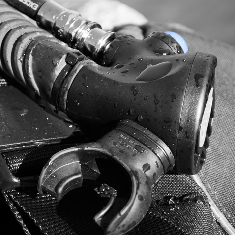 Nutzen Sie an der Oberfläche das AP Valve (oder Auto Air) und blasen Sie Ihr Jacket mit dem Mund auf, indem Sie den Ablassknopf drücken während Sie ins Jacket blasen. Oder benutzen Sie Ihre Notfallflasche falls Sie noch Luft darin haben, um Ihr Jacket aufzublasen – eine schnelle, einfache, lebensrettende Notfall-Auftriebshilfe.“