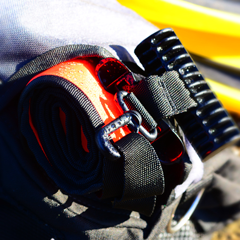 Das RSS bietet die Möglichkeit für sicheres Verstauen von Zubehör mittels Cargo-Clips (wie z.B. Reel, Boje oder Lampe) oder es kann zum sicheren Tragen integrierter Bleitaschen benutzt werden. Die Cargo-Clips sind Teil der Standardausführung und können für integrierbares Blei aufgerüstet werden.