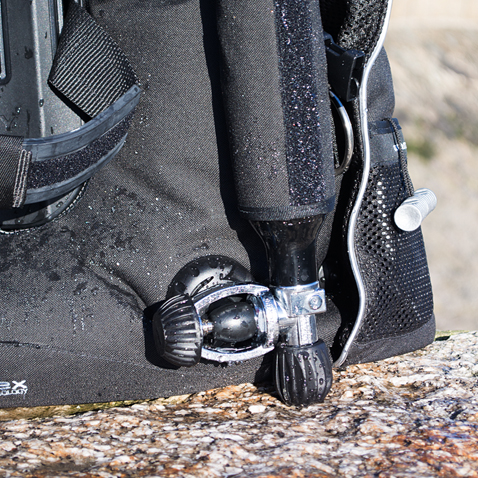 Die bewährte und erprobte AP patentierte Träger-Konstruktion schützt die Auftriebsbase nicht nur, indem Sie die größten Belastungen zur Außenhülle leitet, sie erlaubt außerdem einen schnellen Luftfluss im Jacket. Damit wird verhindert, dass sich Luft und damit Auftrieb in irgendeinem Teil des Jackets einseitig sammelt und eingeschlossen wird und erlaubt dem Taucher damit, sich freier und flexibler unter Wasser bewegen zu können.