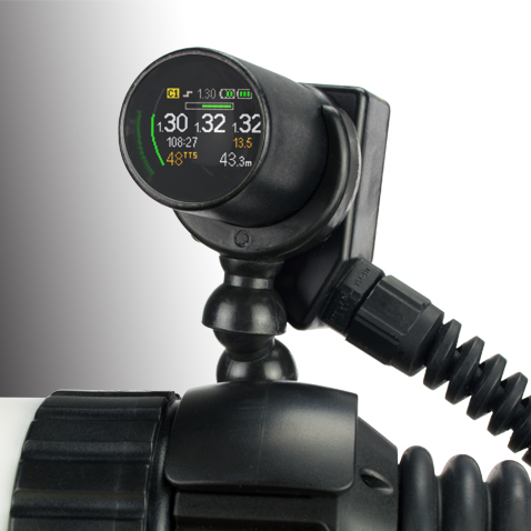 Er ist am Rebreather-Mundstück mit einem frei einstellbaren Gelenkarm befestigt und ermöglicht eine maßgeschneiderte Positionierung des Gerätes für einen optimalen Blick auf das Display ohne die Sicht des Tauchers auf die Tauchumgebung zu beeinträchtigen.