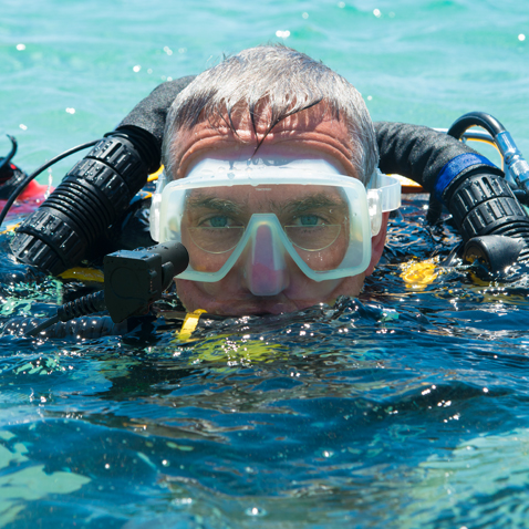 - Vergrößertes virtuelles Bild wird vor den Taucher projiziert für außergewöhnliche Bildschärfe