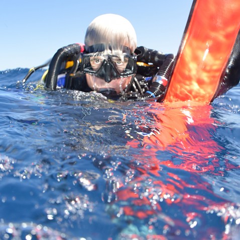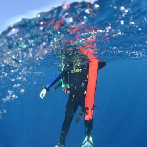 Extra long, self-sealing Surface Marker Buoy for maximum visibility in difficult conditions