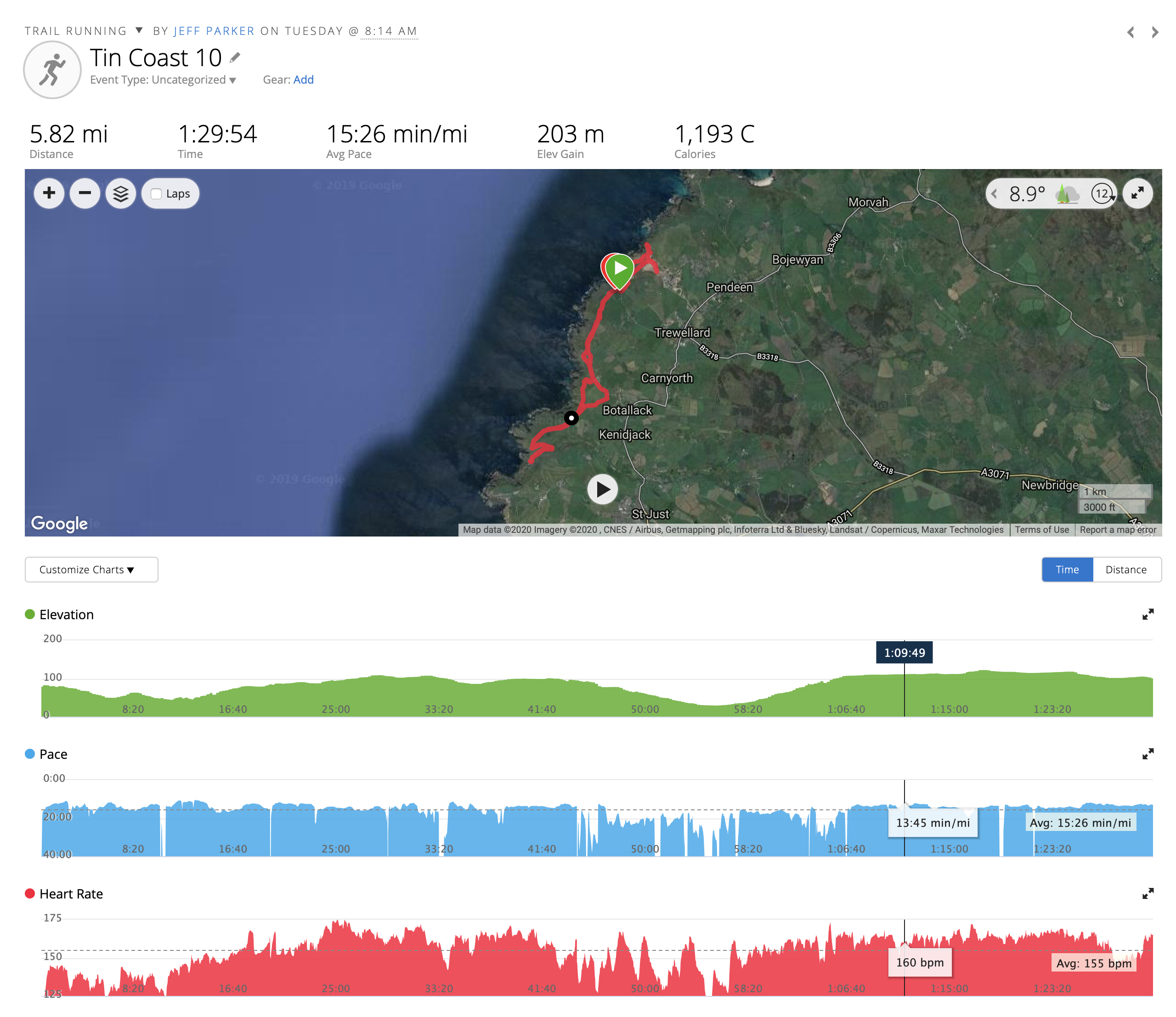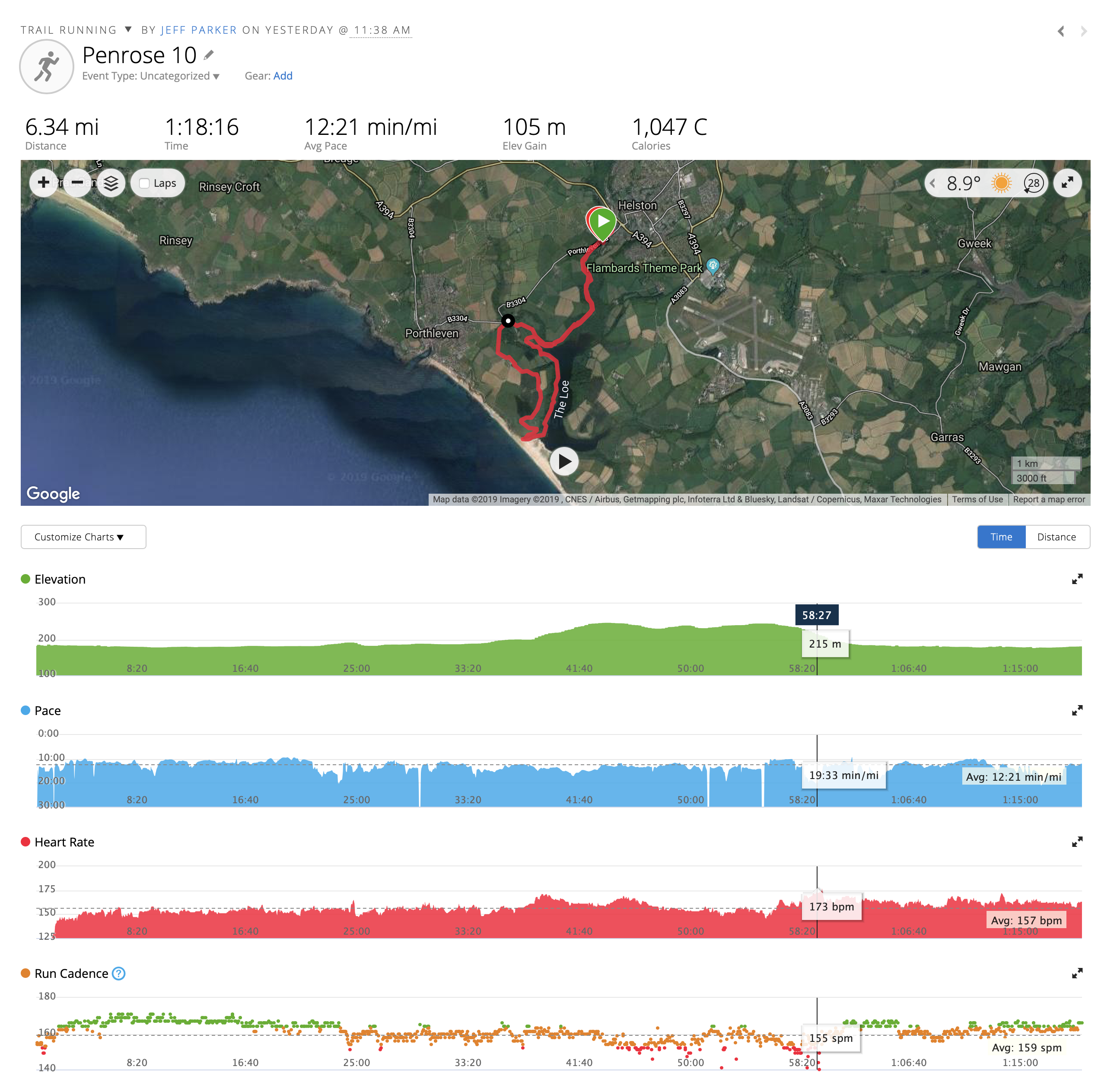 I struggled with the first one last Wednesday May 1st - the Godrevy Lighthouse run - as I was running with knee and ankle injuries - but finished (finally, not quite last!) in about 1 hour 25 mins.