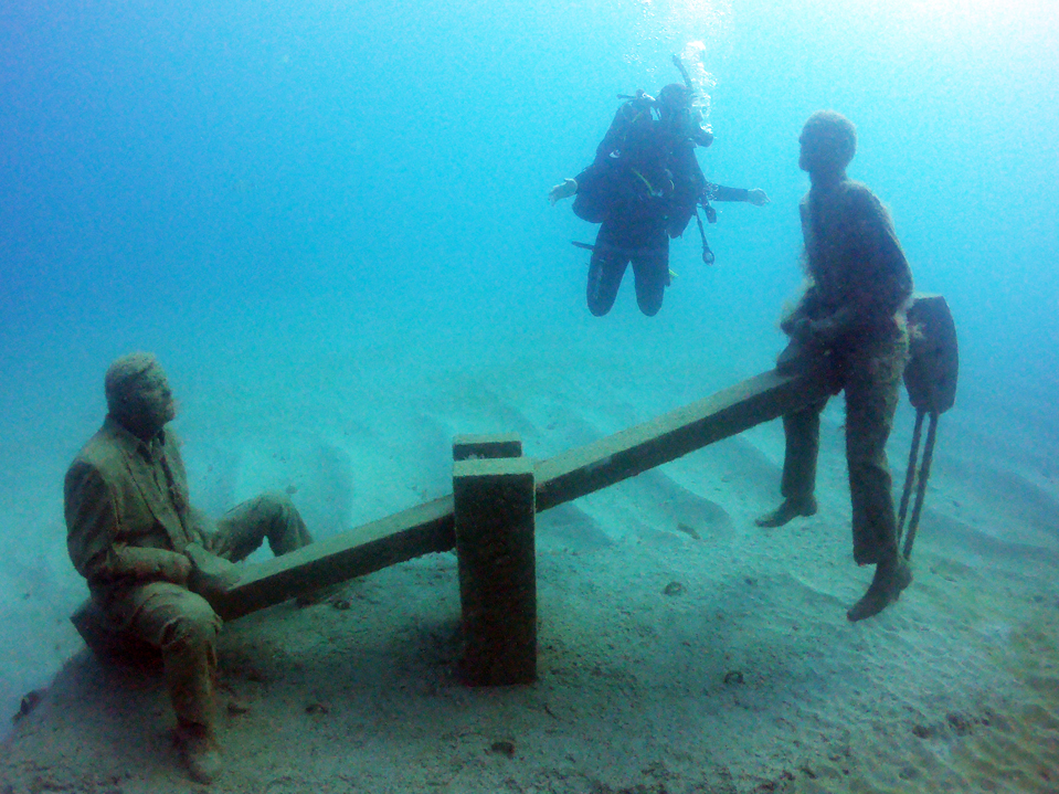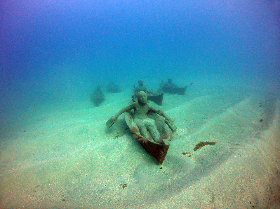 The first set of sculptures - Los Jolateros - a group of children paddling brass boats loomed up suddenly on our left and all anxieties and irritations about the dive vanished as we became mesmerised by this arresting spectacle.