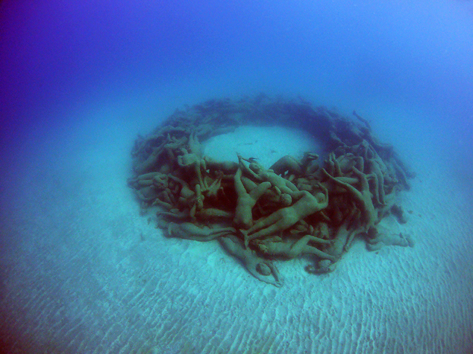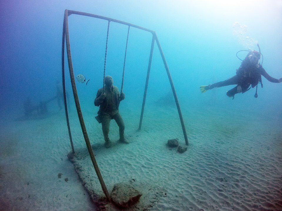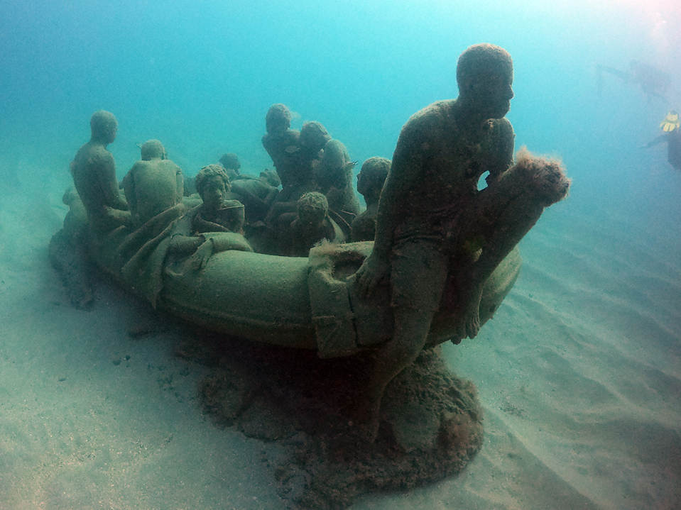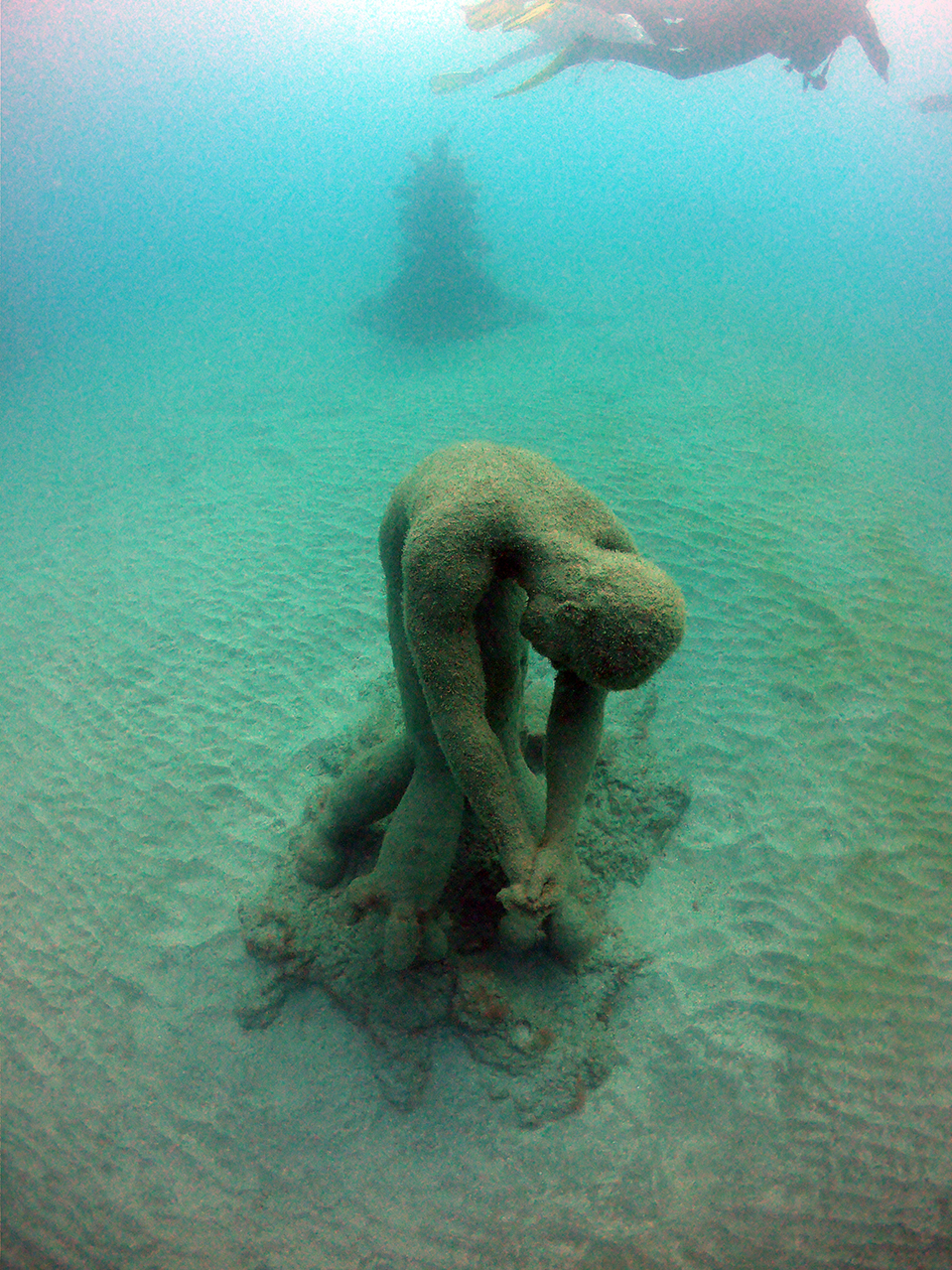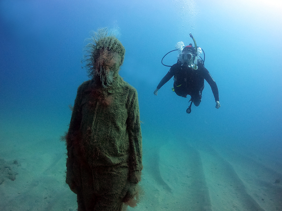 It is the work of artist Jason deCaires Taylor, a British sculptor, conservationist and diver who has been working in Lanzarote since 2016. More about that later.