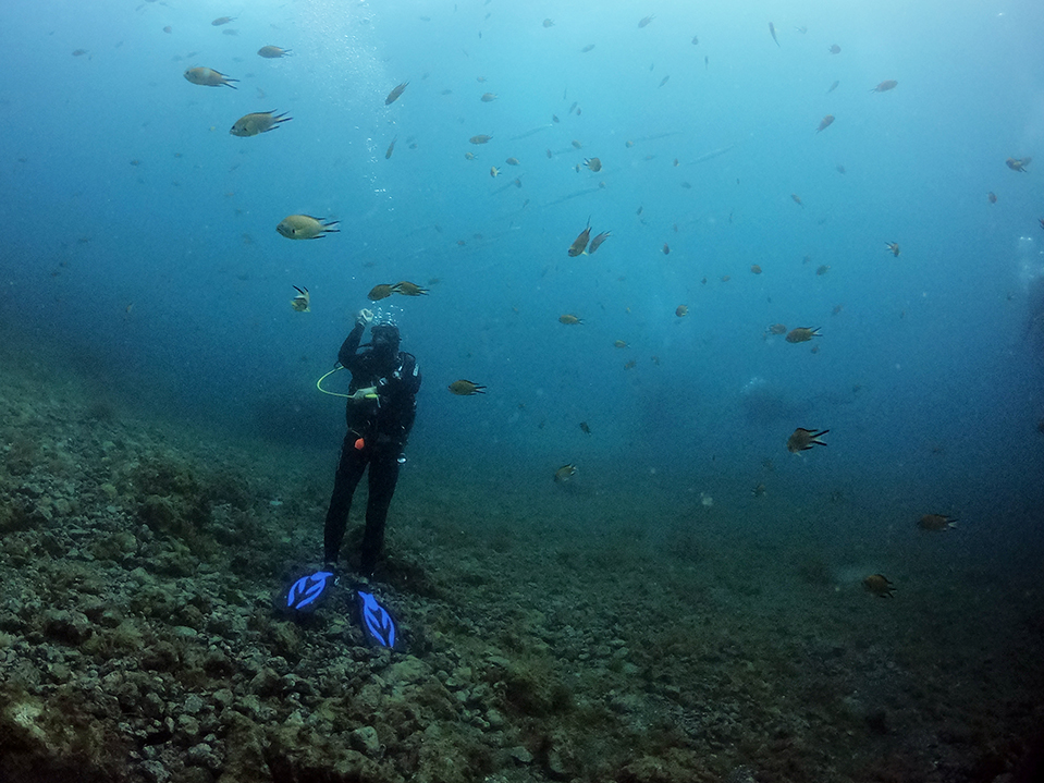 DCIM100GOPROGOPR0346.JPGWe decompressed, slowly making our way up the gentle slope of Playa Chica while Victor perfected the art of diving backwards, keeping a beady-eye on his flock.