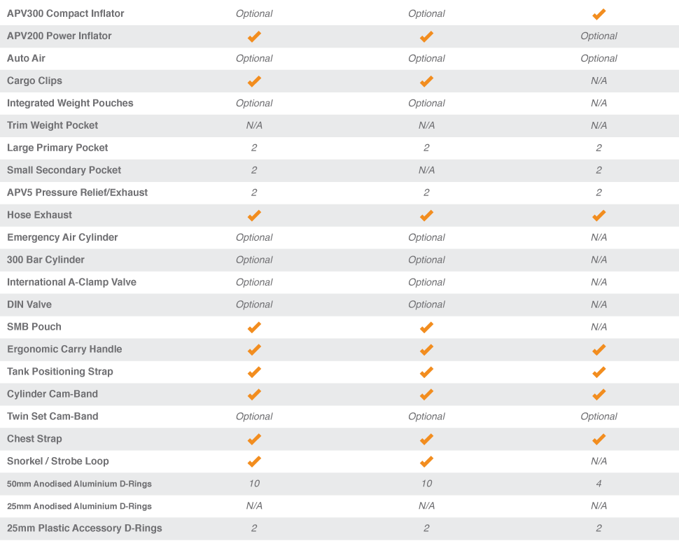 - Choice of Emergency breathing, buoyancy valves & mini cylinders