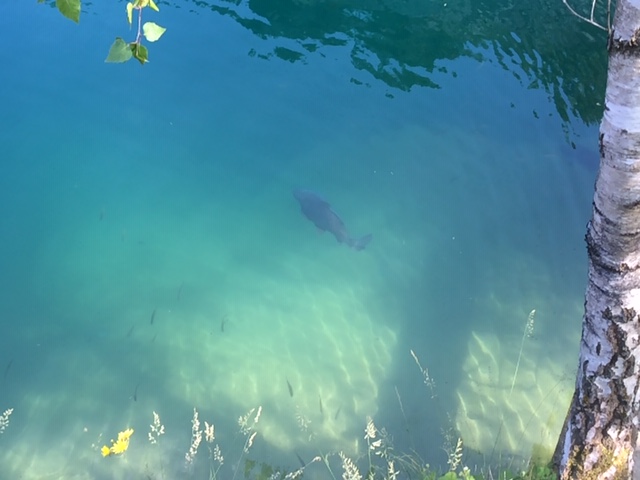 A lot of fish has been released in the quarry, including carp, pike, perch, salmon, trout, barbel, tench, eel, sturgeon and much more. You also come across crayfish and duck mussels.