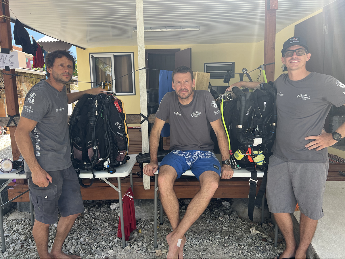 Martin Parker (AP Diving) with Laurent Ballesta (centre) and the TAMATAROA 1 team