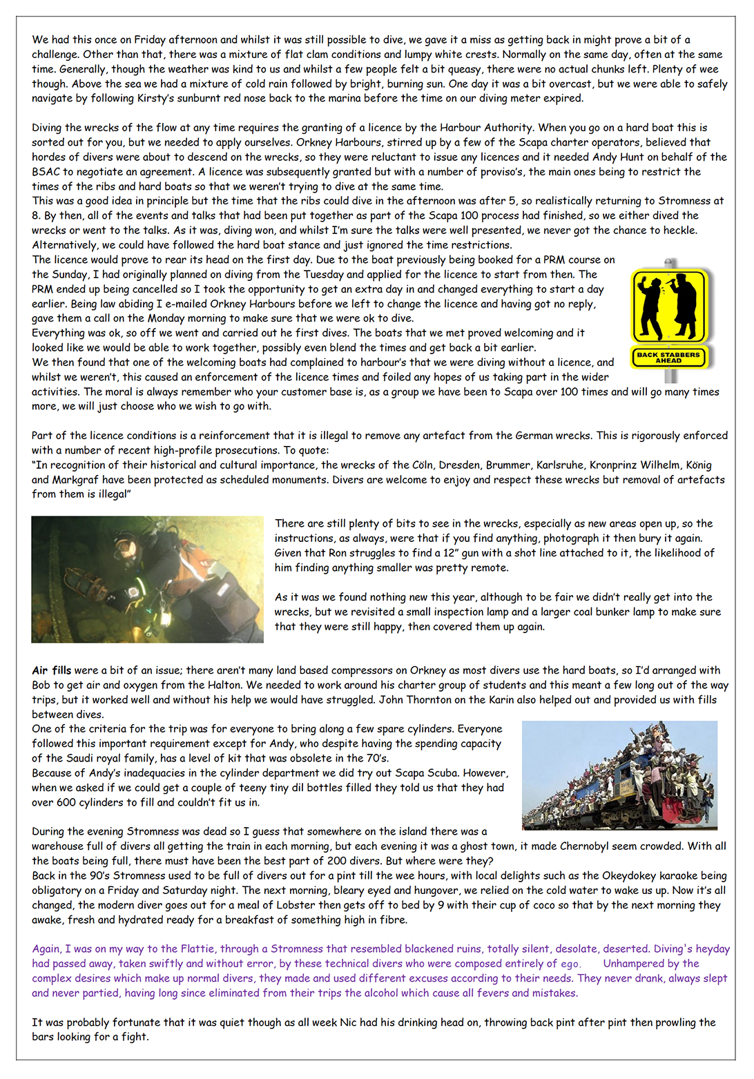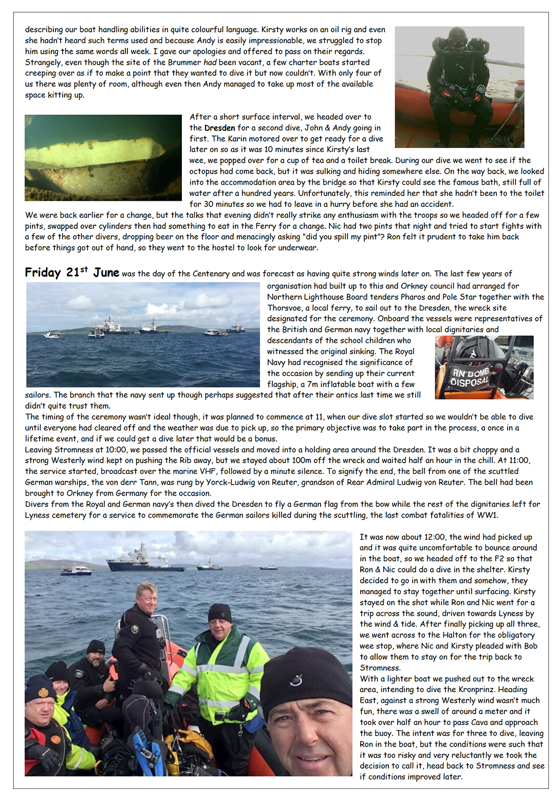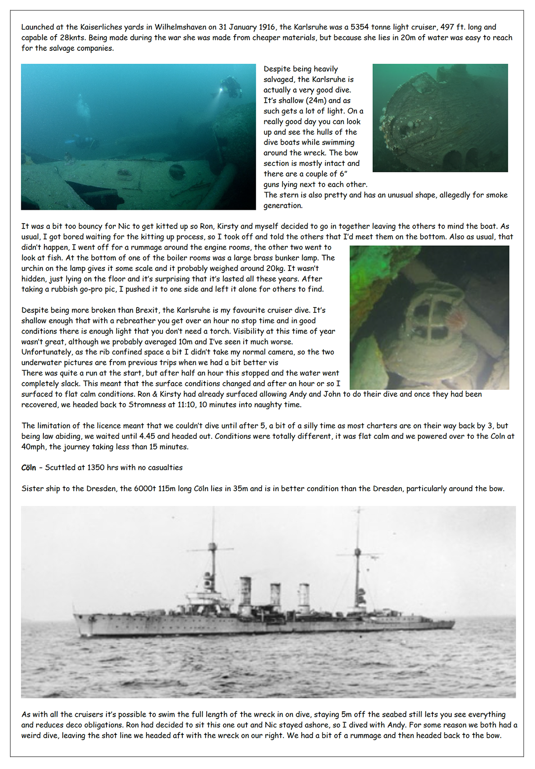 Please Note: Copyright for this report is held by the author. It is reproduced here with the permission of the author. Any disclosure, copying, distribution or other action taken in reliance of the information contained in this report is strictly prohibited. Any views expressed by the author are not necessarily those of the company. AP Diving is the trading name for Ambient Pressure Diving Ltd, registered in England under Company Registration Number 4118978, and the Registered Office is Unit 2C, Water-Ma-Trout Industrial Estate, Helston, Cornwall TR13 0LW.