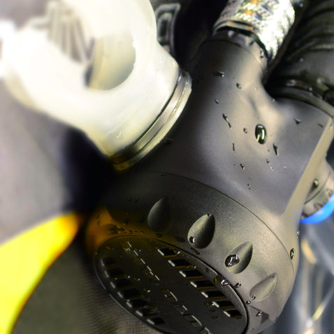 - Choix de source d'air d'urgence haute performance AP. L'Octo-Inflateur Auto-air OU le concept unique d'inflateur APV200 (développé à partir du modèle d'origine AP) apportant une solution de respiration d'urgence, sur le volume du gilet.
