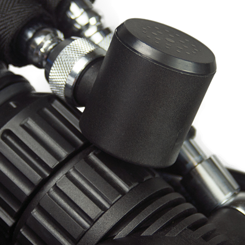 Les deux injecteurs manuels – diluant et oxygène – sont proposés de série mais peuvent être obturés au besoin (par exemple, pour répondre aux exigences des formations PADI Recreational). A l'inverse, des supports d'injecteurs manuels peuvent être ajoutés lors de la commande de votre recycleur.