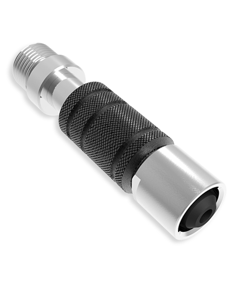 Le raccord rapide GC5 est un adaptateur rapide (type direct-system) permettant la connexion, sans perte de performance, à un raccord mâle 9/16''UNF de 2ème étage tel que se trouvant sur l’alimentation de l'OCB (des deux côtés), de l'ADV ou de tout type de 2ème étage.