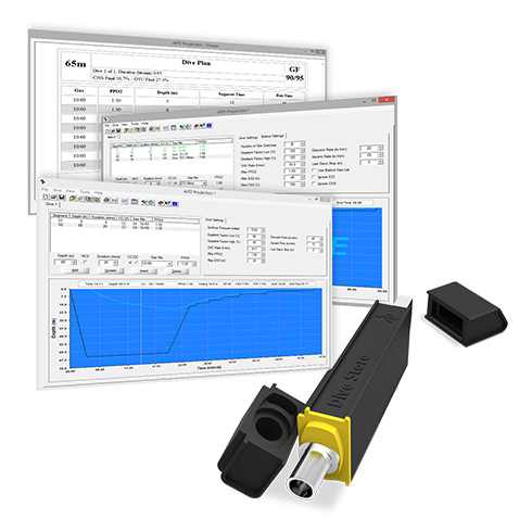 Le logiciel AP Projection Dive Planner & Store est l'un des plus puissants logiciel de planification de plongée CC/OC existant. Il permet de calculer rapidement les décompression pour tous les types de gaz et les profils de plongée. Il est fourni avec le « DiveStore », une clef USB qui peut être connectée directement au recycleur (via la prise du Tempstick) afin de récupérer toutes les plongées enregistrées. Le DiveStore peut contenir environ 1 000 plongées et fourni aussi de la mémoire pour vos runtimes, vos photos ou autres ...