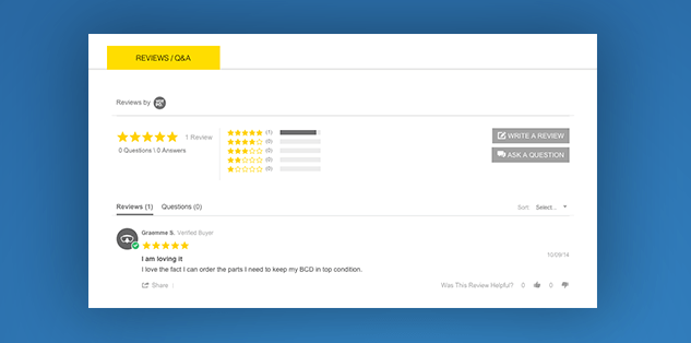 Customer reviews are important. We have recently added a new Reviews and Questions & Answers system to our online shop.