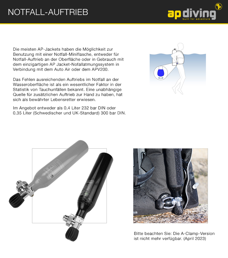 - Notfall-Miniflaschen - erhältlich in 232 BAR DIN oder 300 BAR DIN