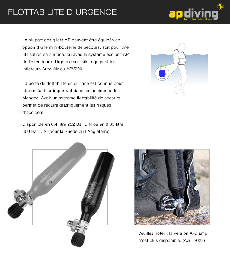 • Détendeur de secours : AP200 ou l'Auto-Air AP100
